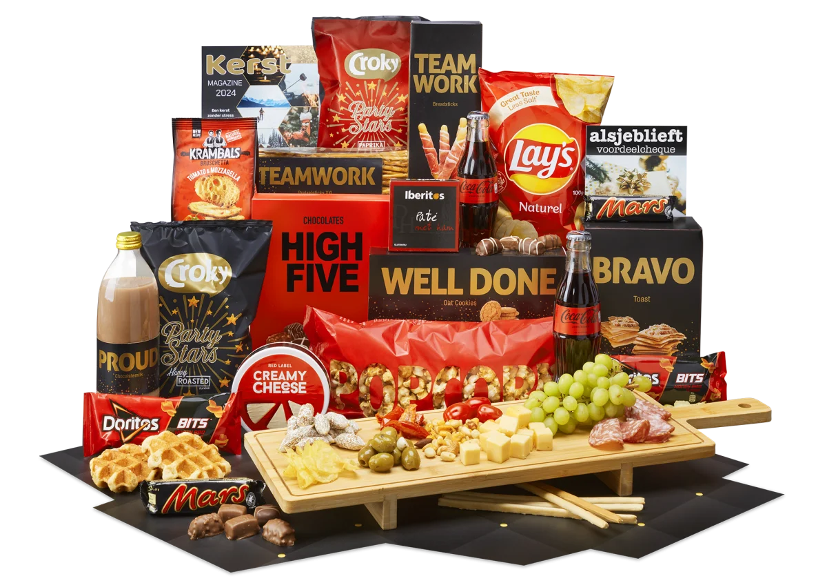 Beleef de ultieme kerstvreugde met ons exclusieve kerstpakket, gevuld met heerlijke lekkernijen voor een onvergetelijke avond met vrienden en familie. Onze kerstplank bevat een assortiment van de meest uitgelezen lekkernijen, perfect voor feestelijk borrelen bij de kerstboom.